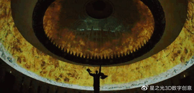 莫斯科的衛(wèi)國戰(zhàn)爭博物館,3D Mapping展示了博物館的巨型圓頂作為畫布,“勝利之路”,通過全息影像的形式展示了勝利的衛(wèi)國戰(zhàn)爭70周年。