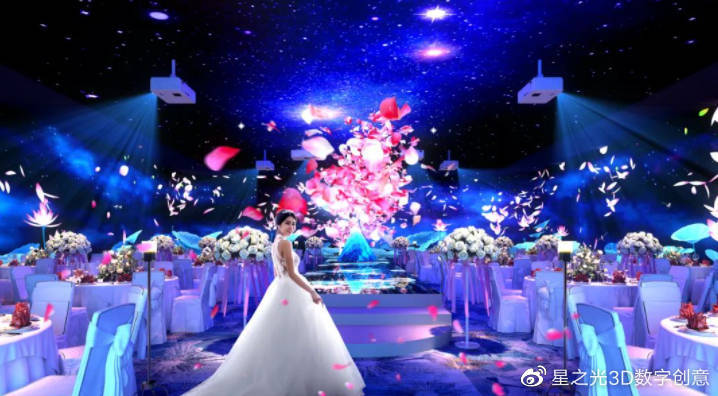傳統(tǒng)的宴會(huì)廳,大多采用投影技術(shù),但效果并不理想,而新型的宴會(huì)廳,則是將5D光影技術(shù)投射到墻壁上,讓賓客身臨其境,宛如置身于一幅畫(huà)卷之中。