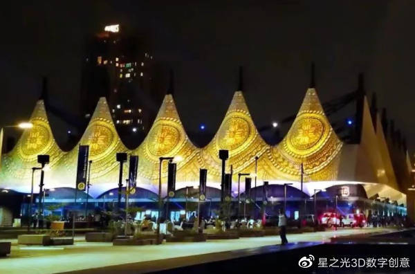 戶外的投影,代表著無(wú)窮無(wú)盡的投影媒介。水幕,山體,植物,建筑立面,雕塑等不同的材質(zhì)和形態(tài),通過(guò)不同的方法來(lái)吸收和消除投射在投影上的光。