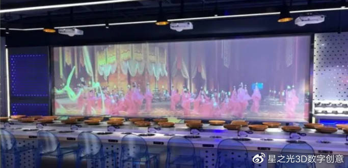 在用餐空間方面,全息5D光影餐廳采用數(shù)碼投影技術(shù),將傳統(tǒng)的餐飲空間變成數(shù)碼主題場(chǎng)景,使消費(fèi)者在進(jìn)入餐廳后,可以親身體驗(yàn)墻壁投影給消費(fèi)者的視覺震撼。