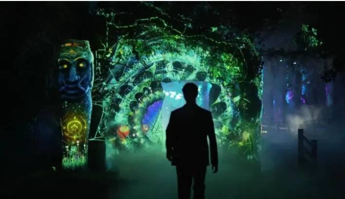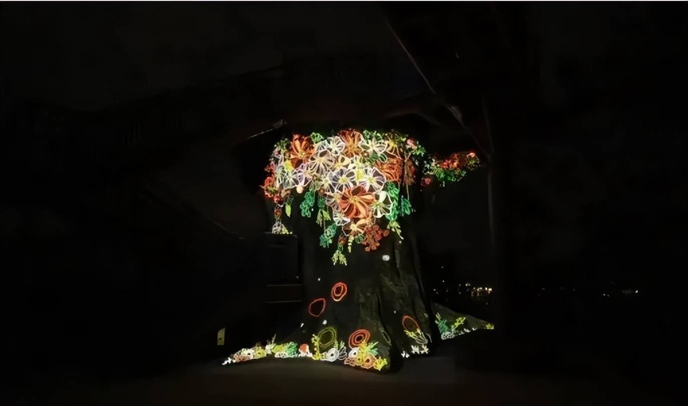 ??呈現(xiàn)給我們的是古??神秘的感覺(jué),以故?的?茶花樹為主,結(jié)合燈光、影像、魔法元素、藤蔓 元素以及古樸?息,營(yíng)造出了?個(gè)超?的數(shù)字藝術(shù)空 間裝置。