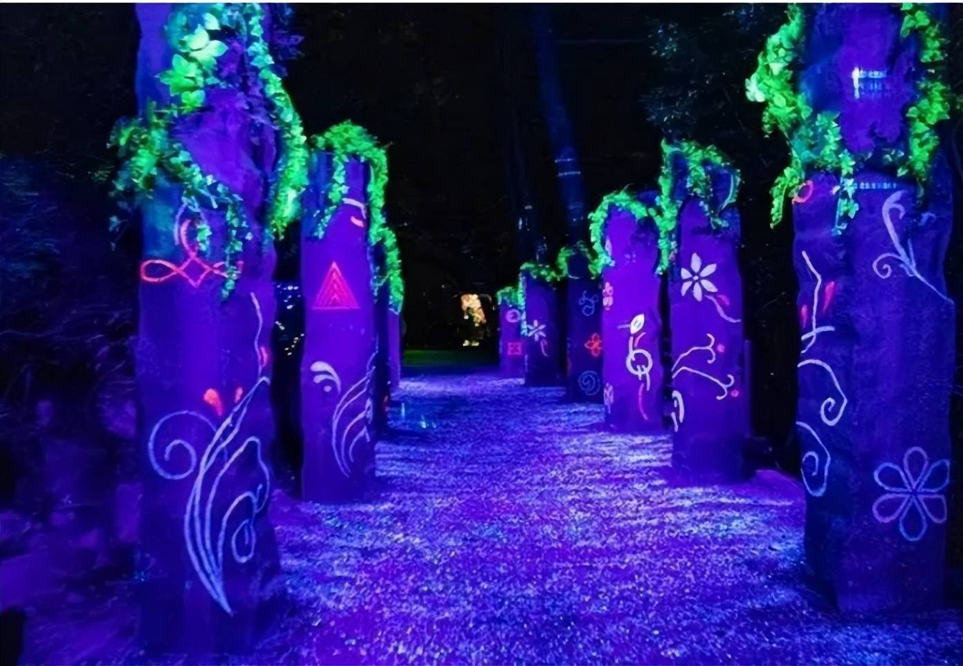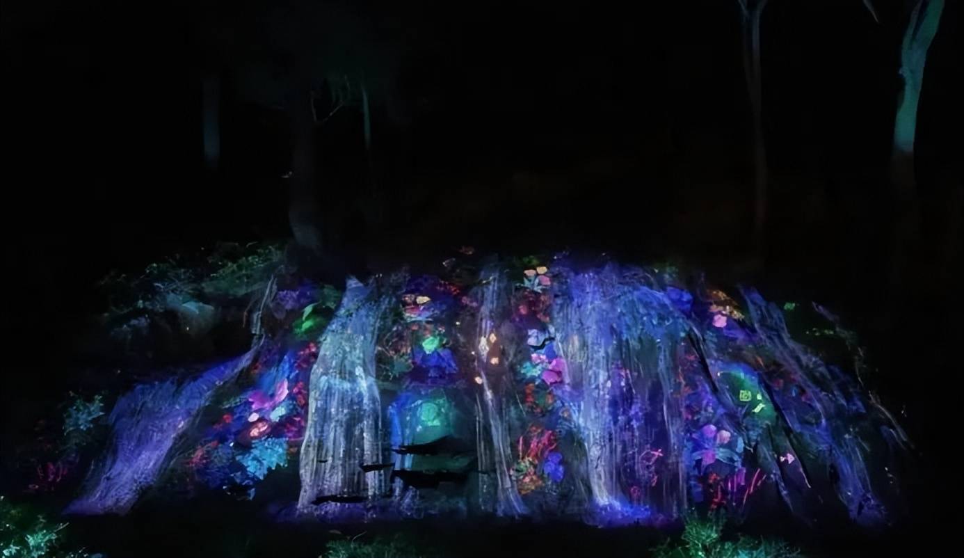 整個(gè)夜游項(xiàng)?共有15個(gè)主題空間。包括光?、神秘瀑布、??茶花、秘密?坊等,其中還運(yùn)?到了 景觀照明、全息投影、3D投影、激光等技術(shù)。