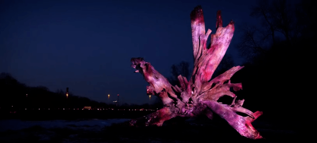 在Philipp Frankyou的作品中,他巧妙地在自然界的浮木、樹干、巖石上面進(jìn)行投影映射。