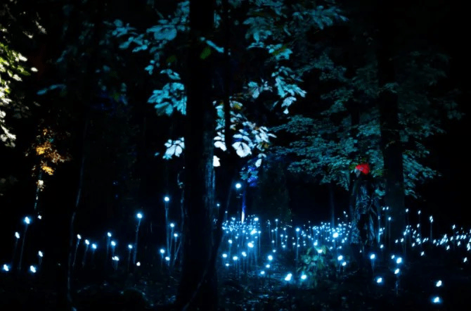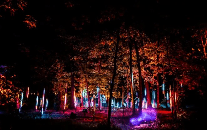 “北部森林之光”是由位于美國博物館森林?徑的燈光藝術(shù)裝置和聲?體驗(yàn)的夜間游園的?系列項(xiàng)?組成的。