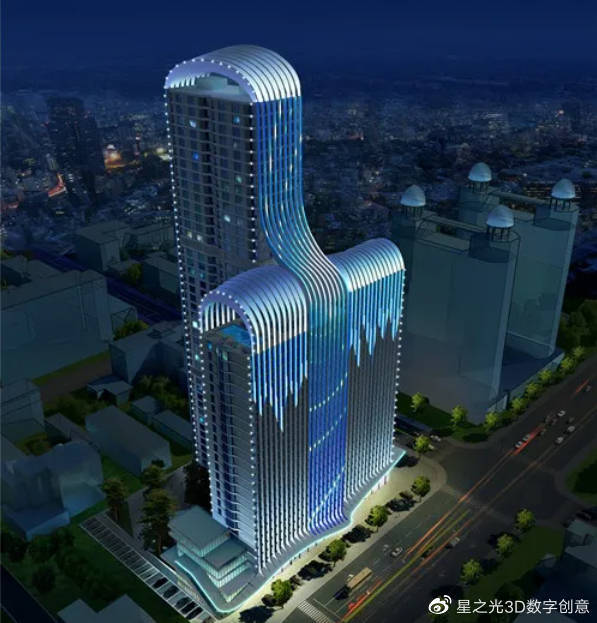 泛光照明是利用照射范圍可任意調(diào)整的四面八方均勻照射的點光源,產(chǎn)生陰影將建筑立面的起伏凸現(xiàn)出來。