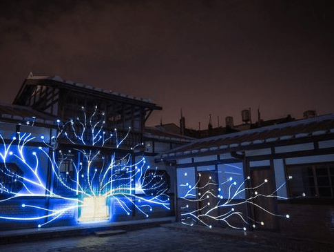 古建燈光秀|懸空藍(lán)色軌道似宇宙星空 老宅光影秀超震撼