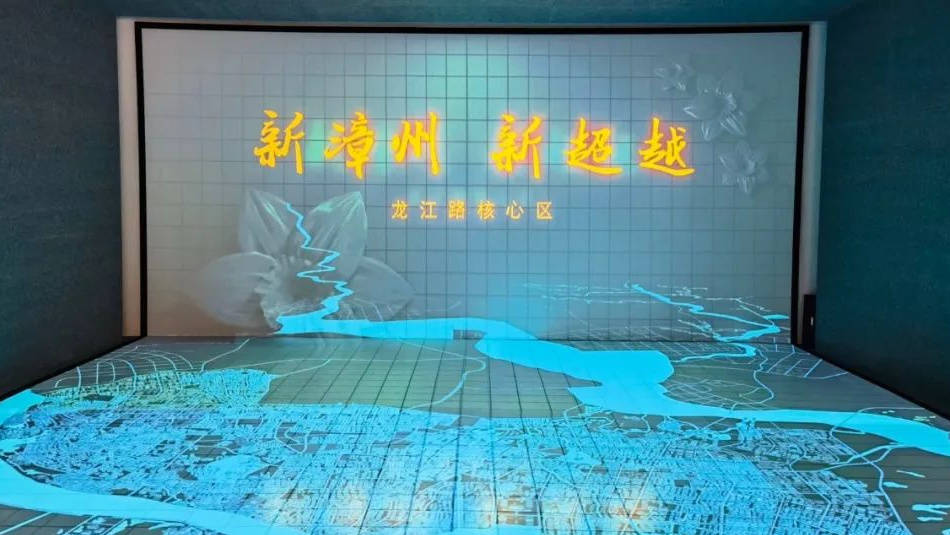 展廳解決方案漳州市新中心城區(qū)規(guī)劃模型與影片多極聯(lián)動(dòng),組成氣勢(shì)磅礴、縱覽漳州的沉浸空間。